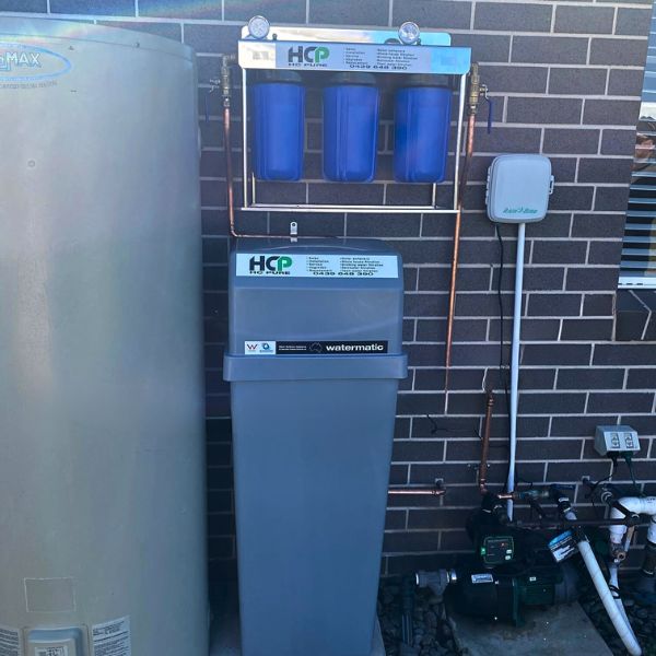 A water softener is a filtration system that significantly reduces water hardness by removing the responsible minerals. It is installed at the water’s point of entry to your home, generally at the pump of your rainwater tank, or where your town mains water line enters the wall of your home (depending on accessibility).